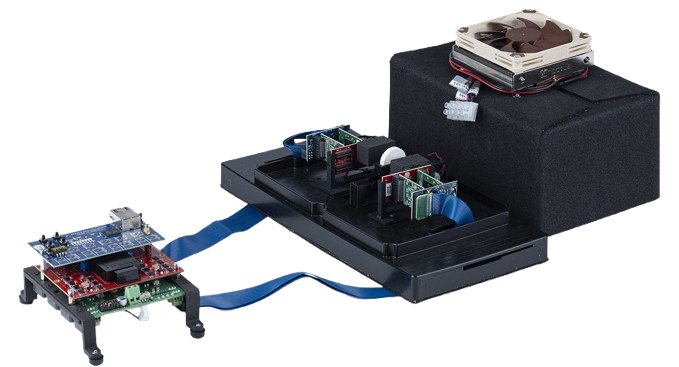 The DAQ board plugs into the PCIe bus of the DAQ computer.